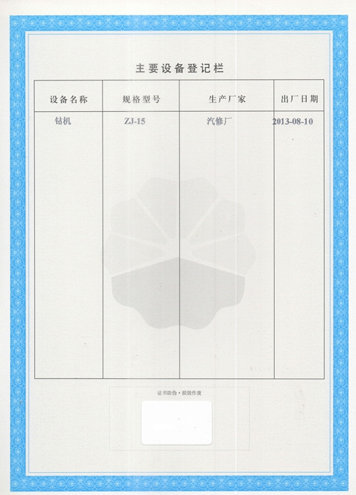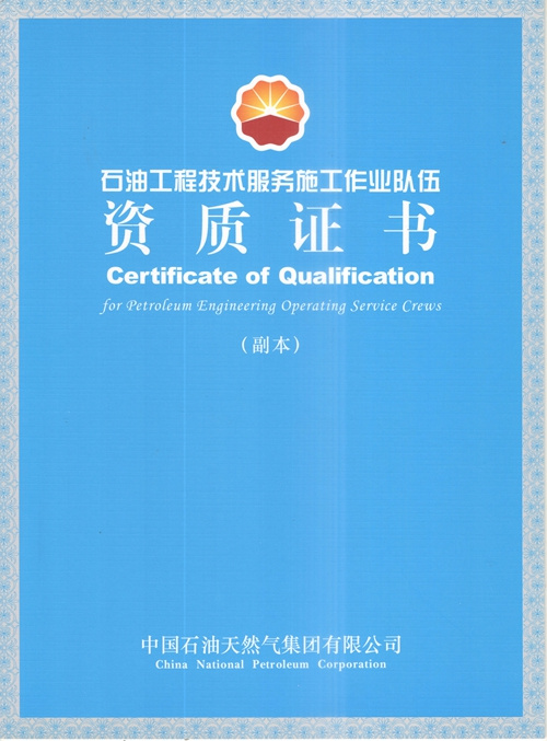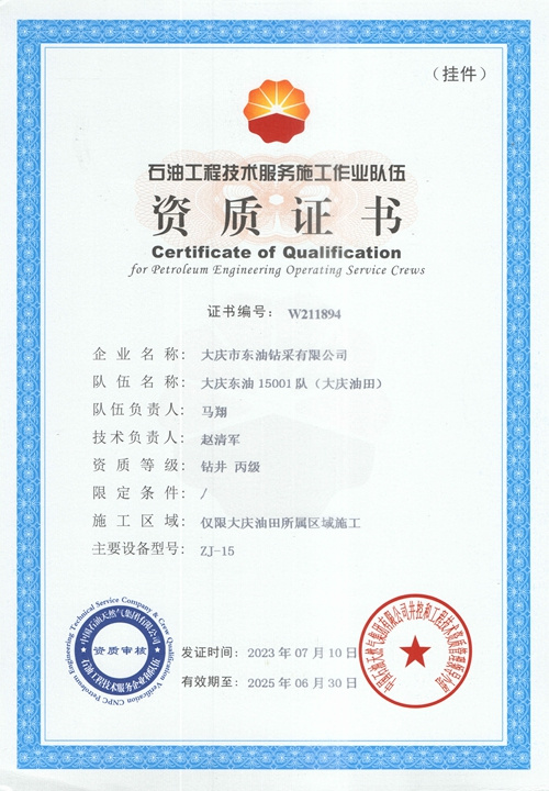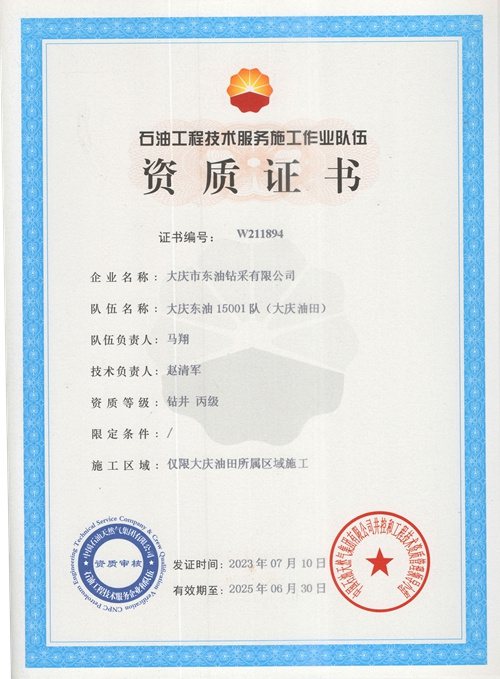 大慶東油15001隊(大慶油田)資質證書